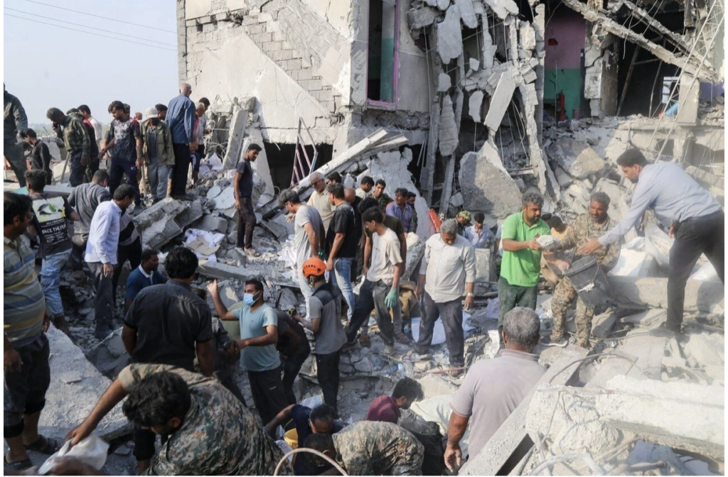 Secouristes et témoins présents à l’école après l’attaque (Mehr News Agency / CC BY 4.0)
